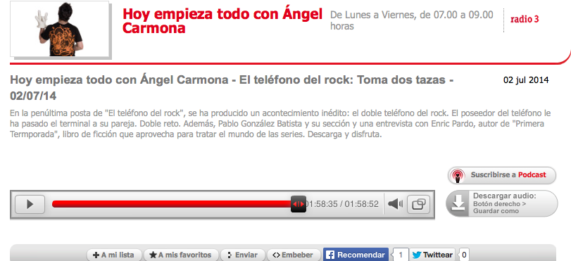 Entrevista de Ángel Carmona a Enric Pardo en el programa Hoy empieza todo de Radio 3, a propósito de Primera Temporada.